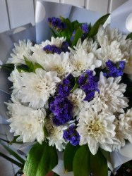 Хризантема кустовая 5 по 250₽Статица 4 по 150₽Упаковка: 200₽Пленка: корейская